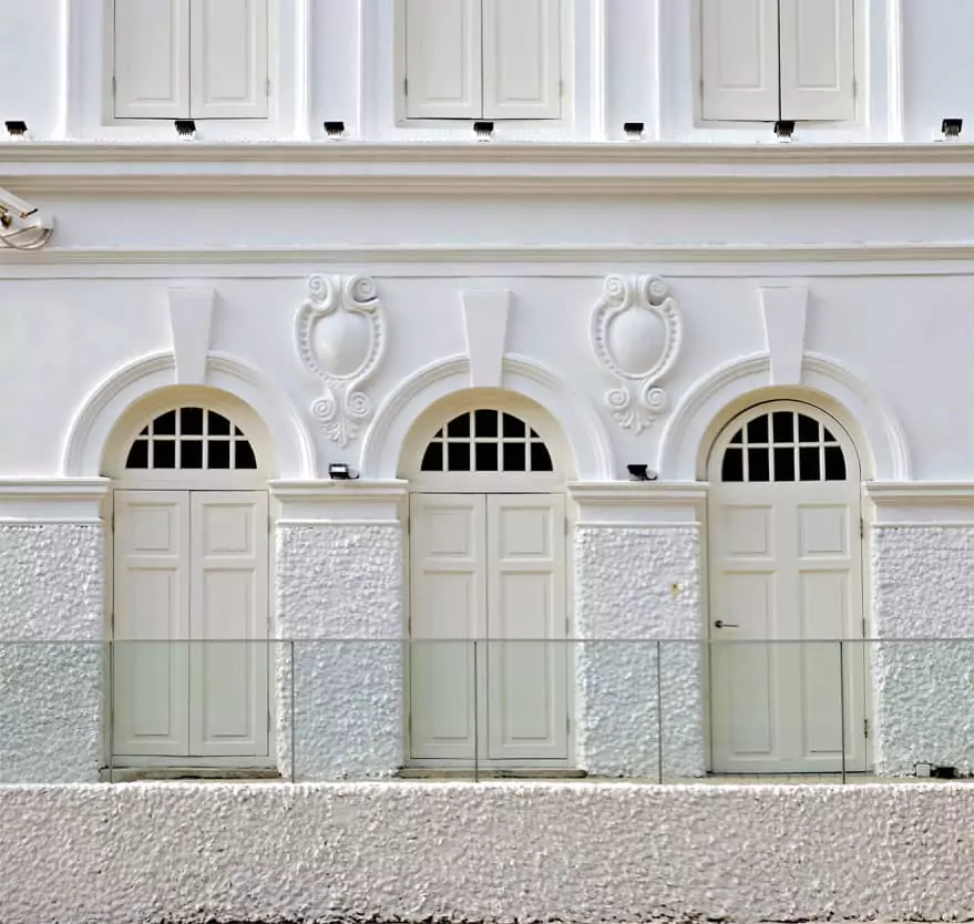Garage roller doors are shaped like cylinders encircling the opening of a garage.